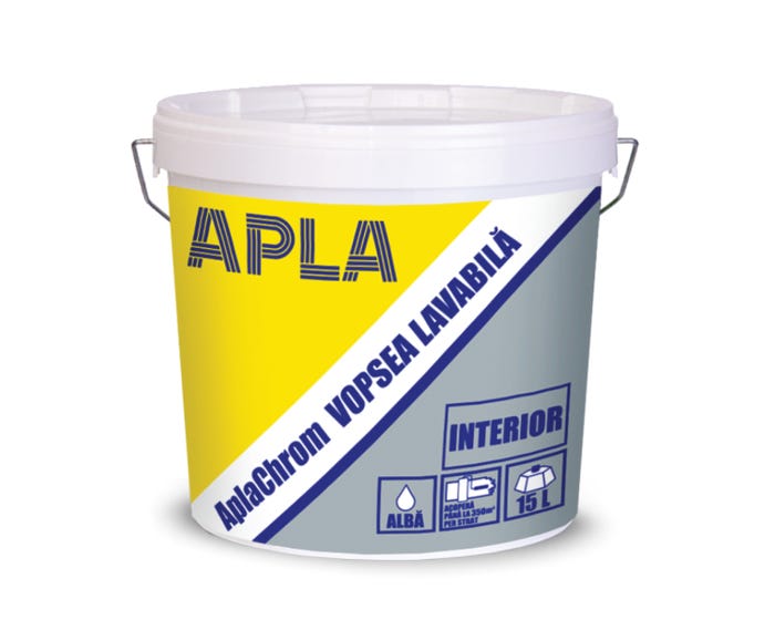 Ai nevoie APLA CHROM VOPSEA LAVABILA de o vopsea de calitate pentru interior? APLA CHROM vopsea lavabilă interior alb, în varianta de 15 litri, este soluția ideală pentru finisarea pereților tăi. Această vopsea oferă un aspect curat și durabil. Transformă-ți casa cu APLA CHROM! Această vopsea lavabilă este ușor de aplicat și oferă o acoperire excelentă. Bucură-te de un interior proaspăt și luminos.- Acoperire excelentă, ascunde imperfecțiunile.