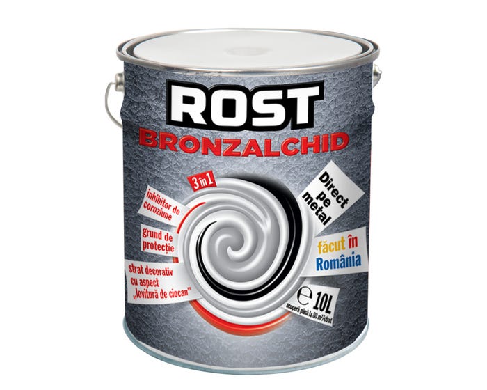 ROST BRONZALCHID 3-IN-1 Lovitura de Ciocan este soluția ideală pentru protejarea și înfrumusețarea suprafețelor metalice. Această vopsea oferă o protecție superioară împotriva coroziunii, asigurând o durată lungă de viață a metalului.