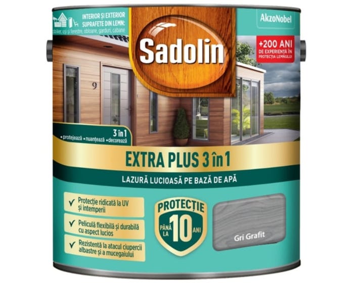 SADOLIN EXTRA PLUS 3 IN 1 LAZURA LUCIOASA B.APA GRI GRAFIT 5 L