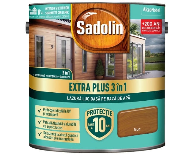 SADOLIN EXTRA PLUS 3 IN 1 LAZURA LUCIOASA B.APA NUC 2.5 L