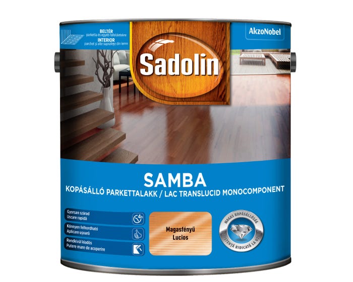 SADOLIN SAMBA LAC LUCIOS este alegerea perfectă pentru a proteja și înfrumuseța lemnul. Acest lac incolor oferă o protecție excelentă împotriva umidității și uzurii. Este ideal pentru diverse suprafețe din lemn, de la mobilier la elemente decorative.