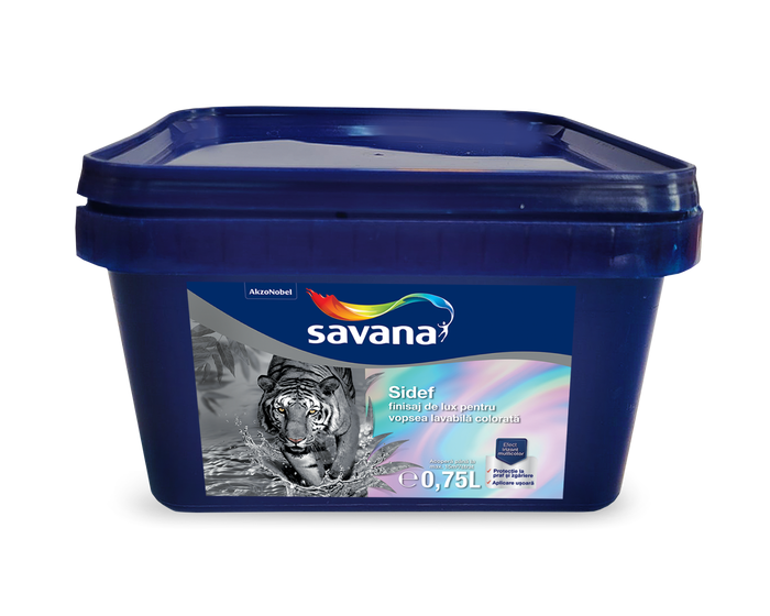Vopseaua  SAVANA SIDEF  oferă un finisaj de lux pentru pereții și tavanele interioare. Formula sa pe bază de dispersii apoase acrilice asigură aplicare uniformă, peliculă superlavabilă și un efect sidefat elegant,  potrivit pentru decoruri rafinate.