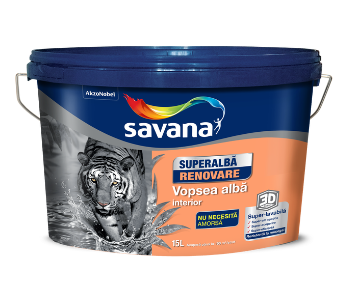 SAVANA SUPERALBA RENOVARE este concepută special pentru utilizare interioară. Pentru suprafețe exterioare, este recomandat să folosiți o vopsea specială pentru exterior.