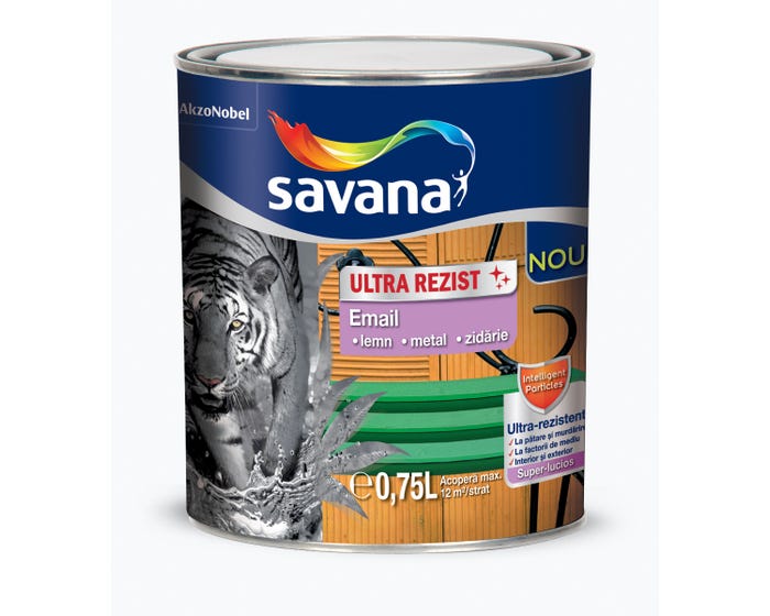 Descoperă SAVANA ULTRAREZIST EMAIL SUPERLUCIOS, vopseaua email perfectă pentru a oferi un aspect modern și durabil suprafețelor tale. Această vopsea email verde primăvară de 2.5 L este ideală pentru utilizare atât la interior, cât și la exterior, oferind protecție și un finisaj impecabil. Cu SAVANA ULTRAREZIST EMAIL SUPERLUCIOS, proiectele tale de construcții și renovări vor căpăta un aspect profesional și o rezistență de lungă durată. Alege calitatea și durabilitatea pentru casa ta!- Rezistență superioară la intemperii și uzură.